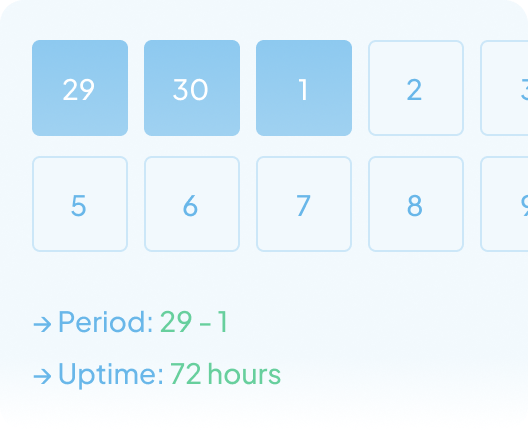 Uptime calculation for selected dates — convenient for reports, billing and SLA control